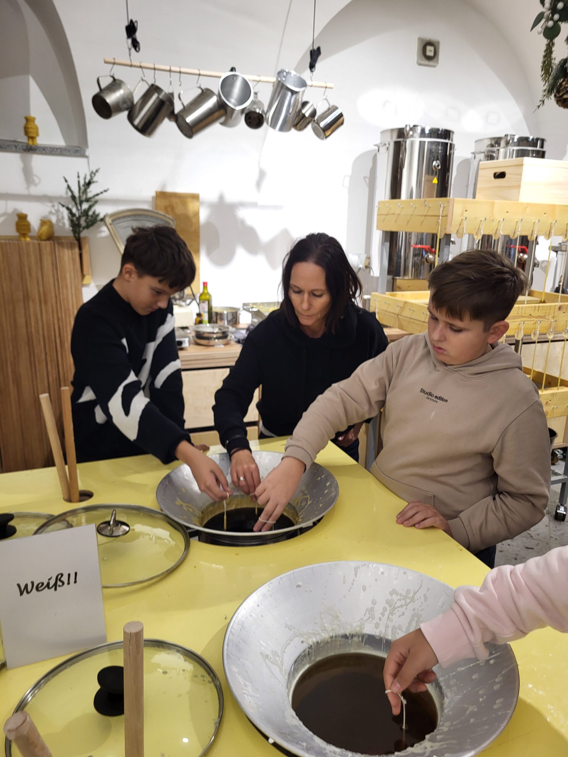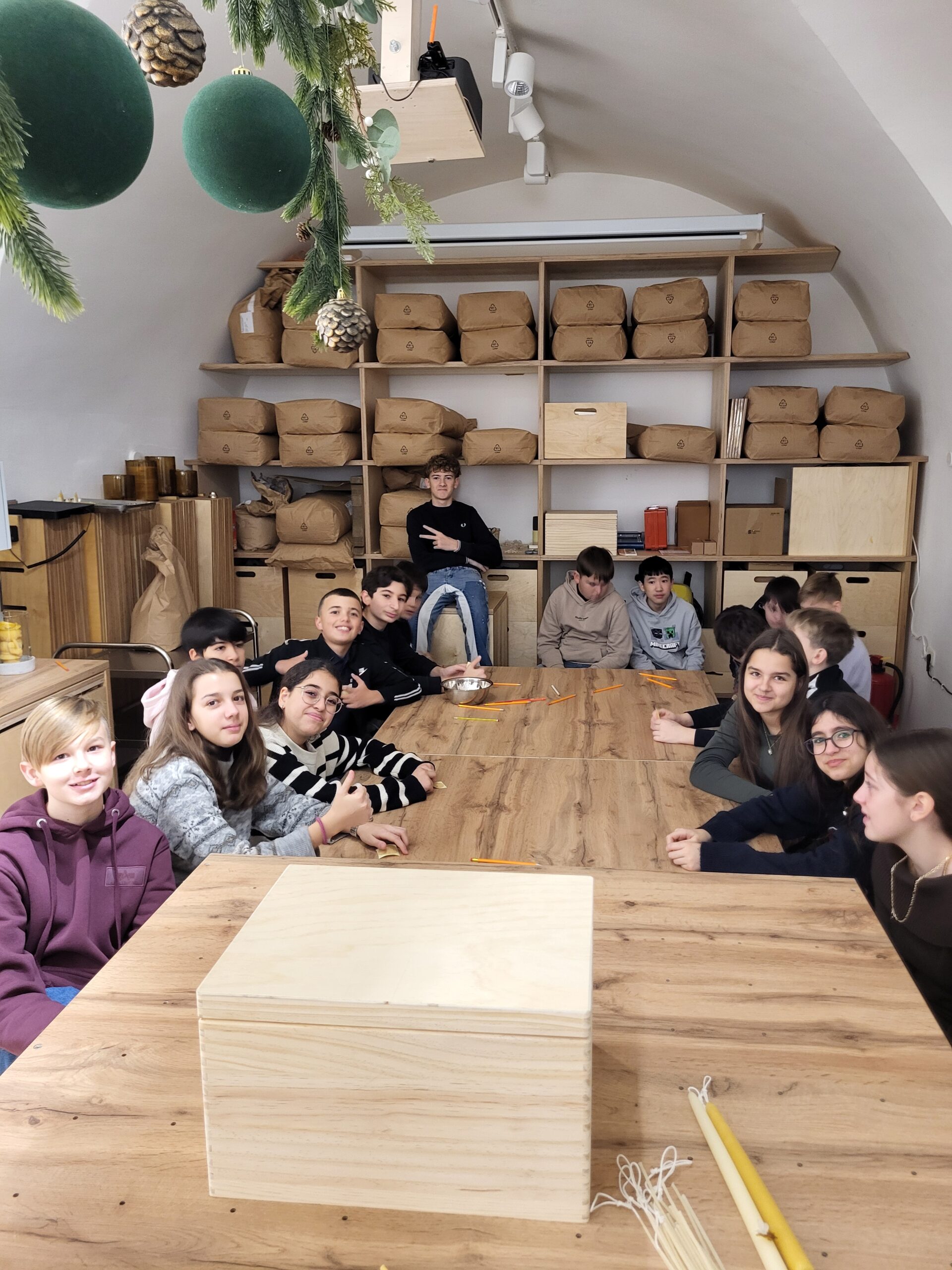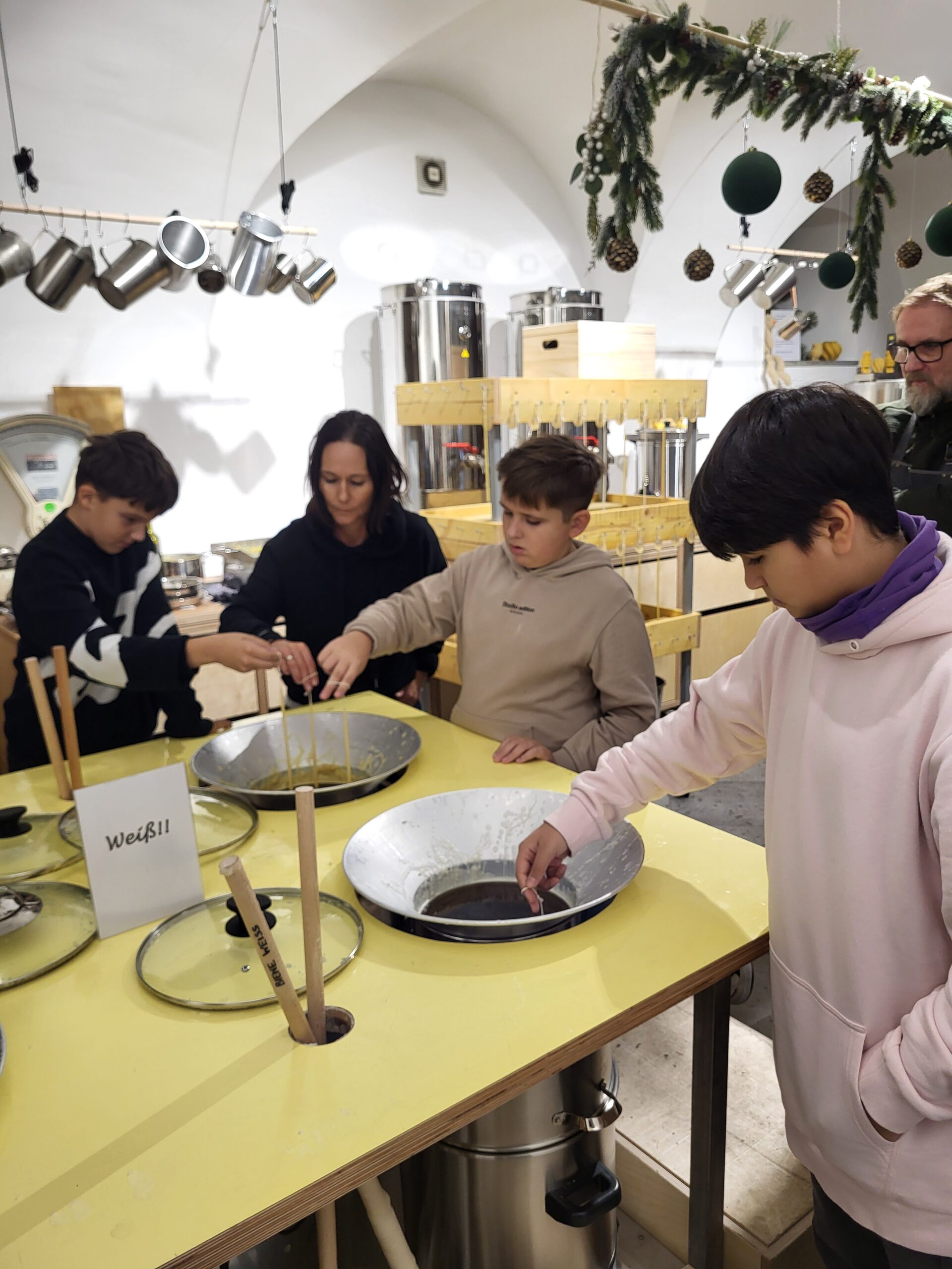 Für die 3b ging es als Kurzausflug in dieser Weihnachtszeit zur Kerzenkapelle in Linz. Dort lernten sie interessante Informationen über die Geschichte der Kerze und natürlich auch wie man Bienenwachskerzen überhaupt richtig ziehen kann. Die Kinder waren begeistert und fleißig (wie Bienen) am Ziehen und konnten mit einem schönen, selbstgemachten Weihnachtsgeschenk nach Hause gehen.