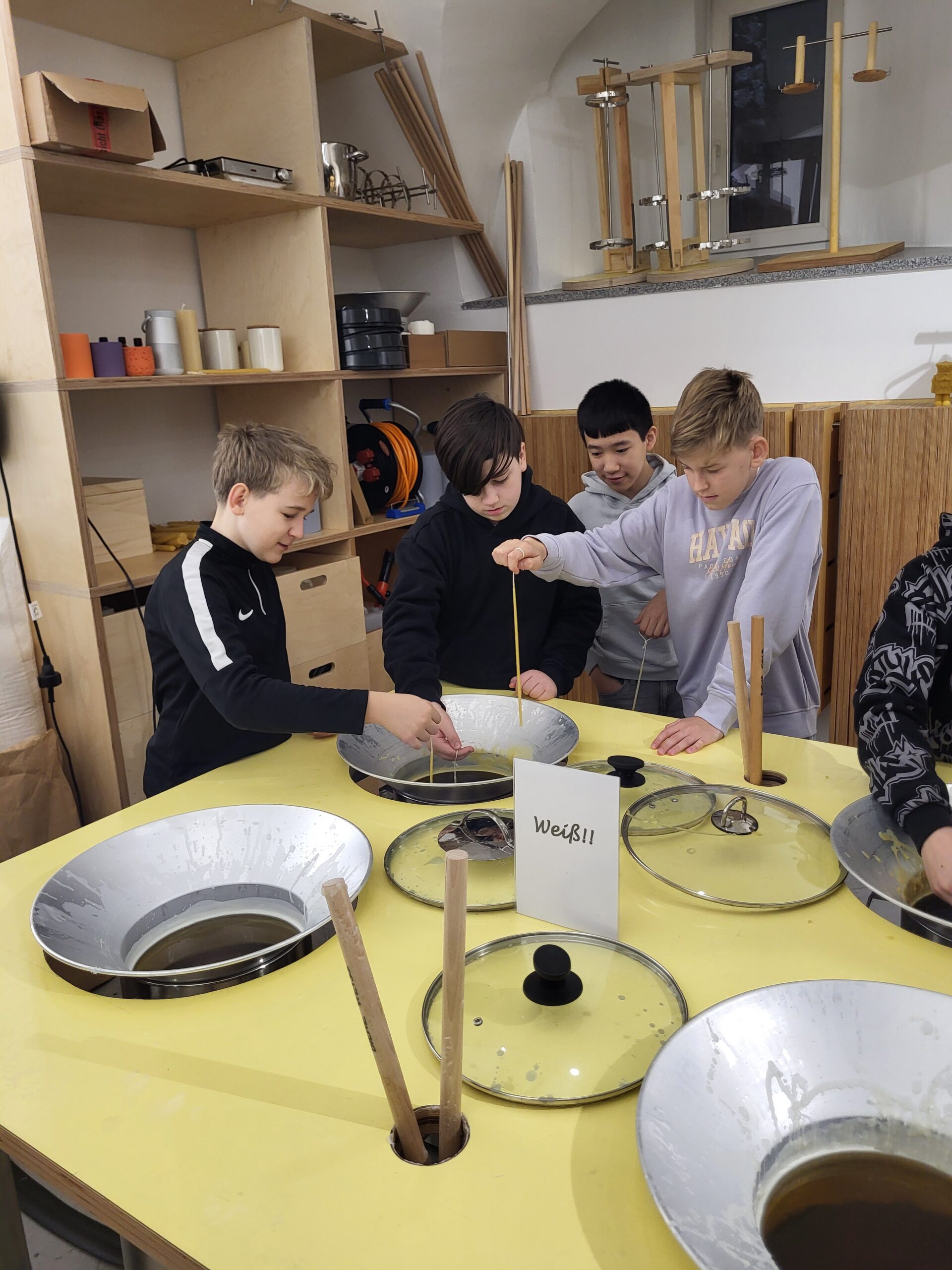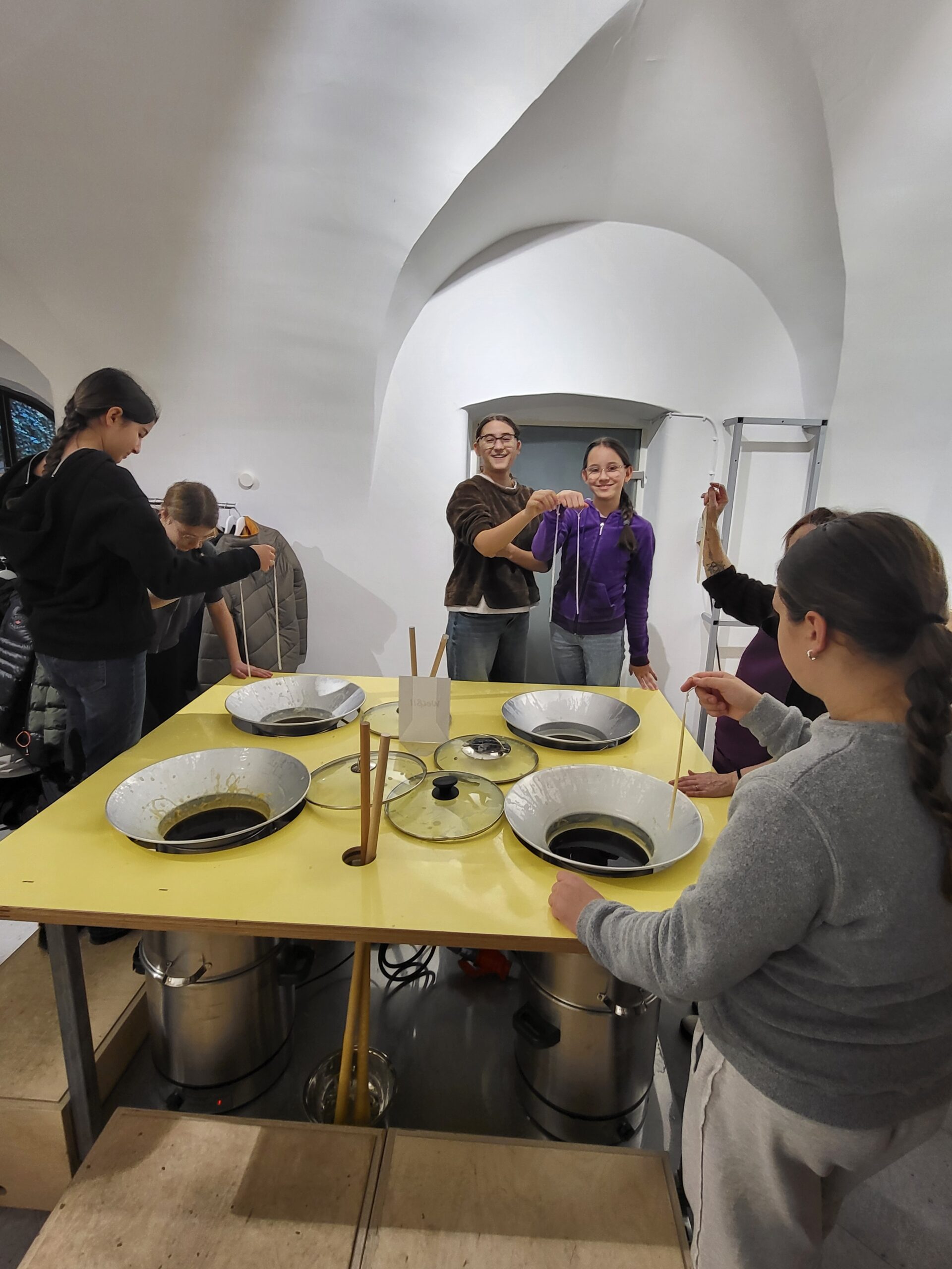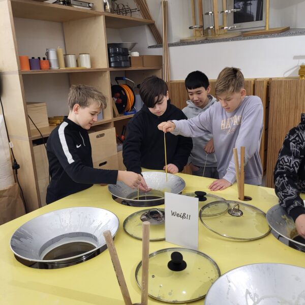 Für die 3b ging es als Kurzausflug in dieser Weihnachtszeit zur Kerzenkapelle in Linz. Dort lernten sie interessante Informationen über die Geschichte der Kerze und natürlich auch wie man Bienenwachskerzen überhaupt richtig ziehen kann. Die Kinder waren begeistert und fleißig (wie Bienen) am Ziehen und konnten mit einem schönen, selbstgemachten Weihnachtsgeschenk nach Hause gehen.