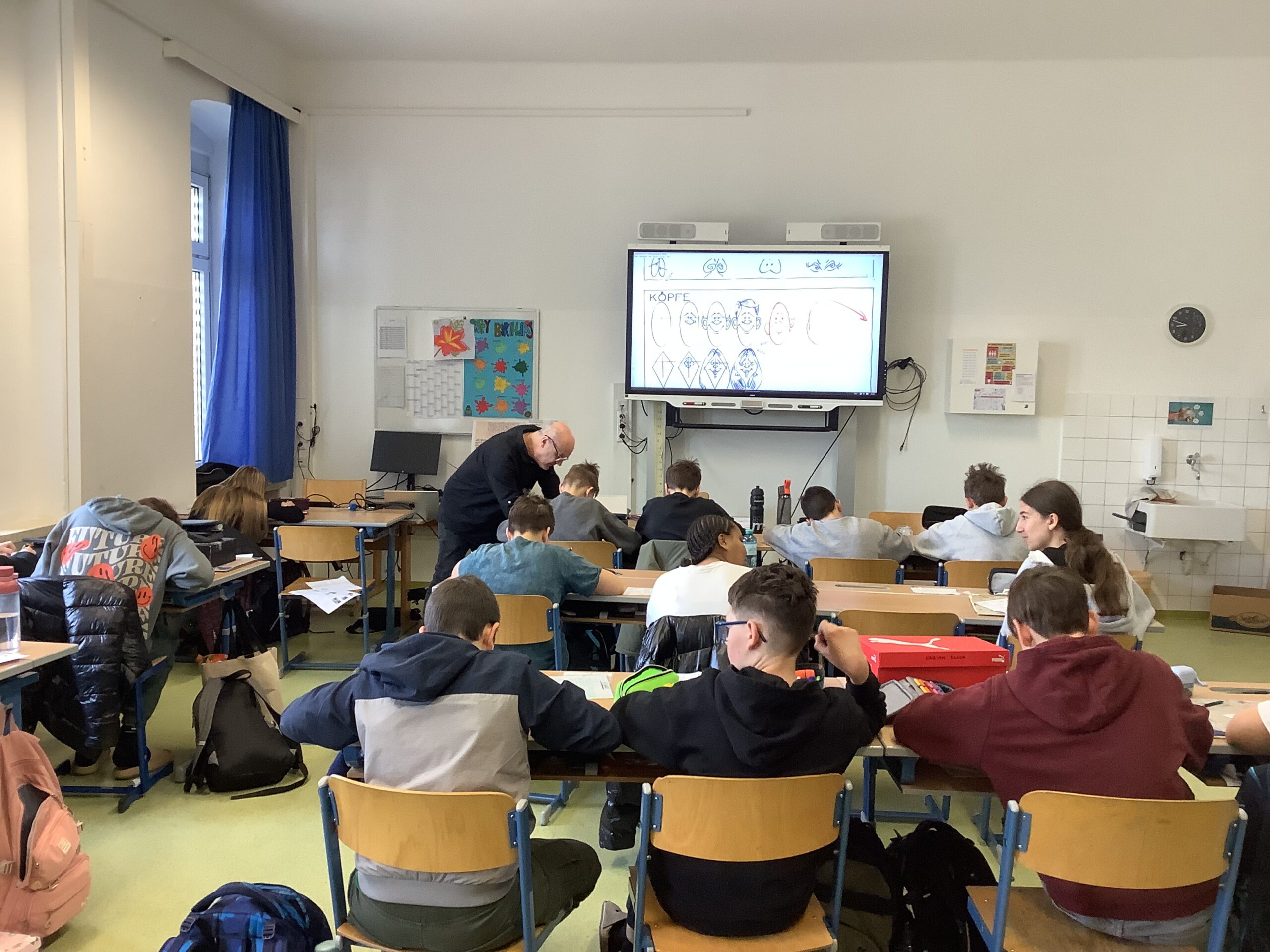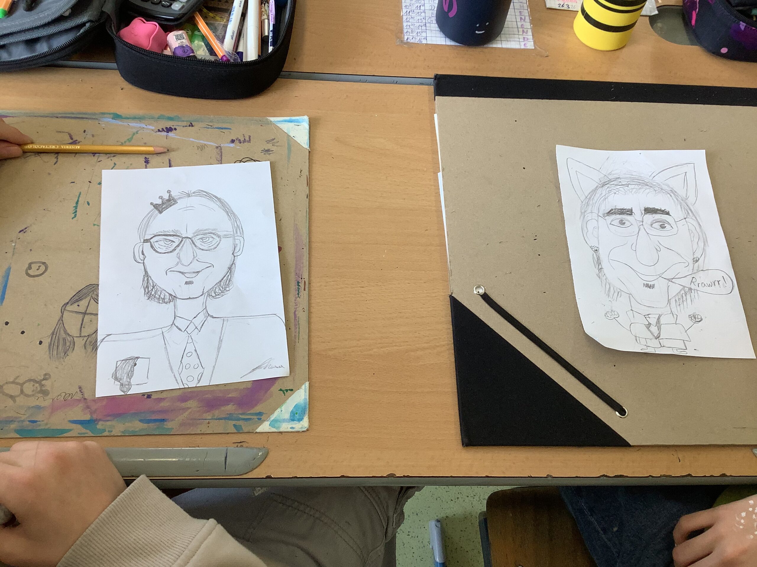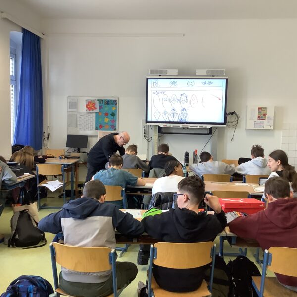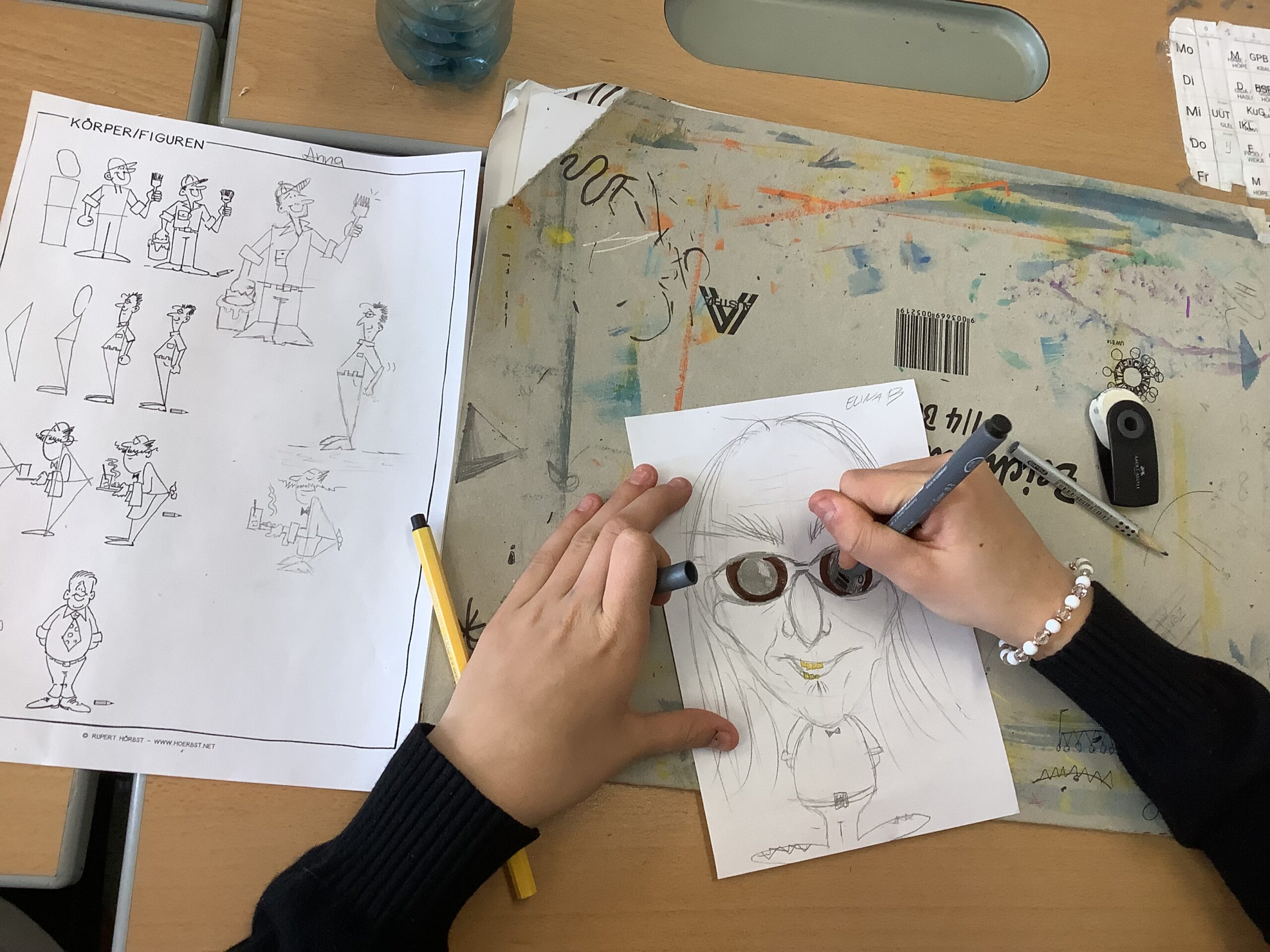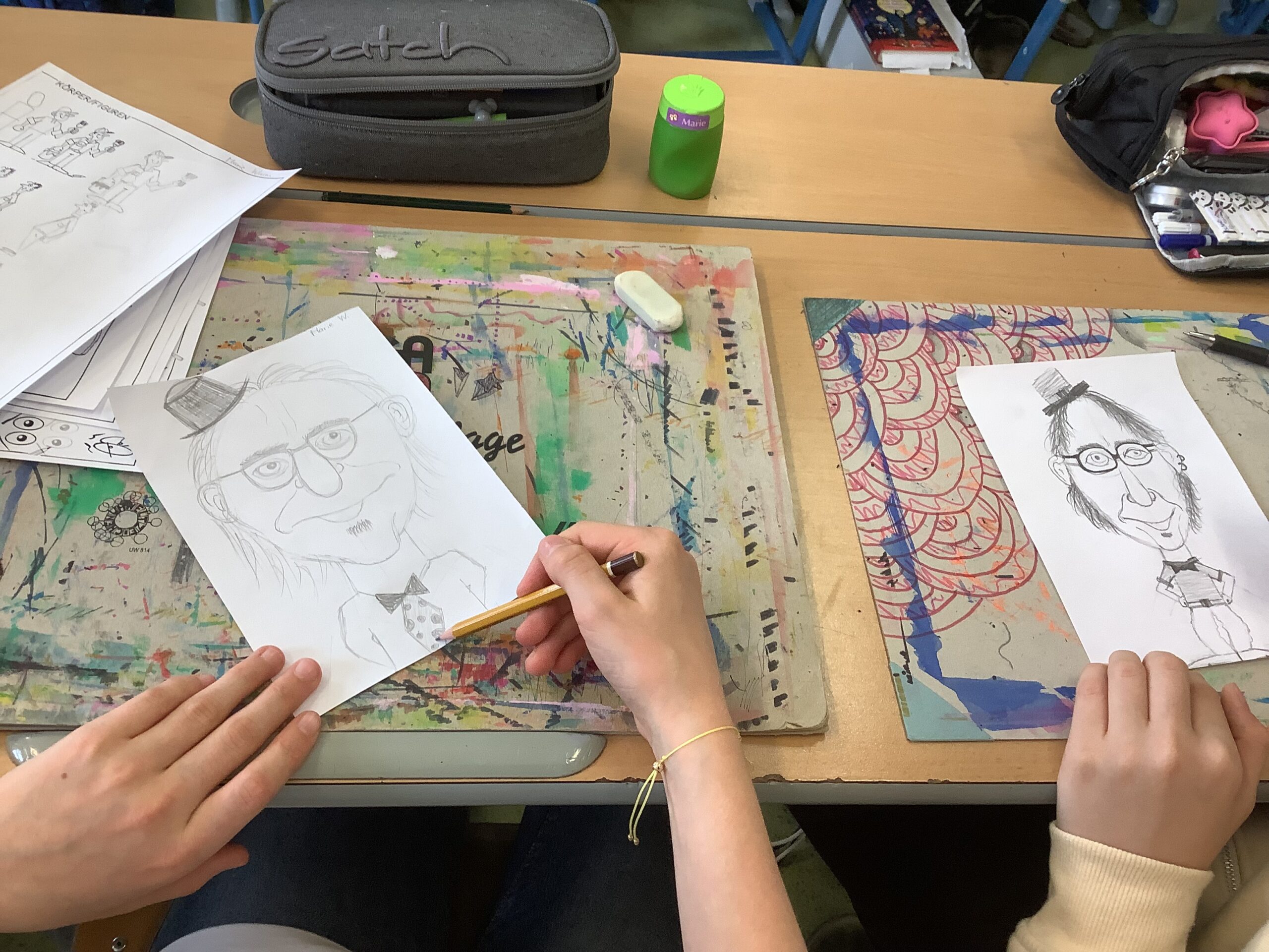 Portraitkarikatur und einer Karikatur mit persönlichem inhaltlichem Zugang dar. Die Schüler:innen hatten viel Spaß beim kreativen Schaffen.