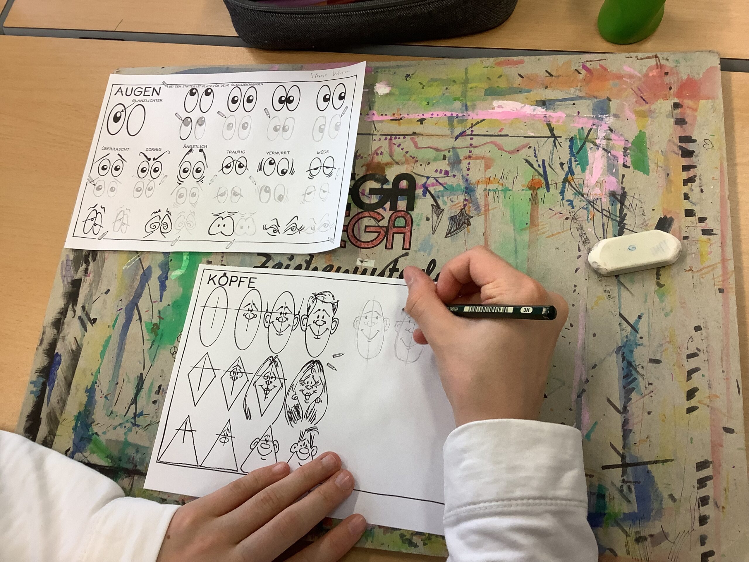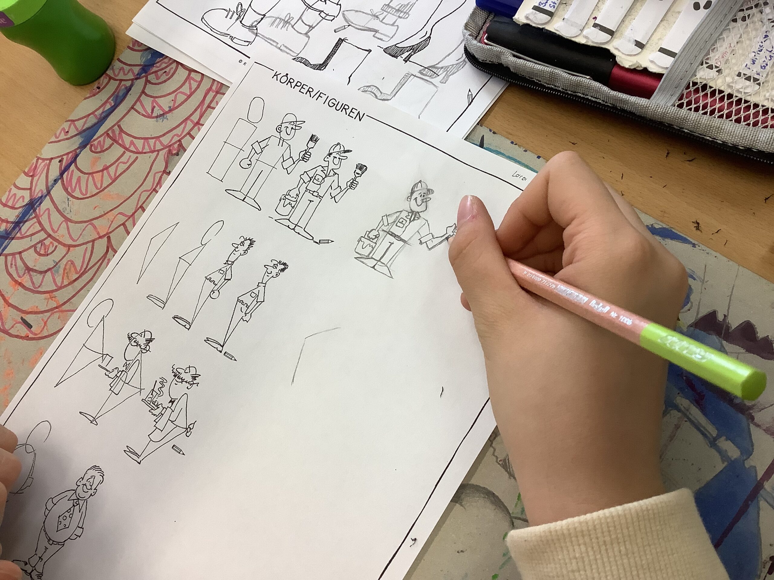 zeichnerische Fähigkeiten in Richtung Karikatur, Cartoon, Comic geübt. Den Abschluss stellte das Fertigen einer