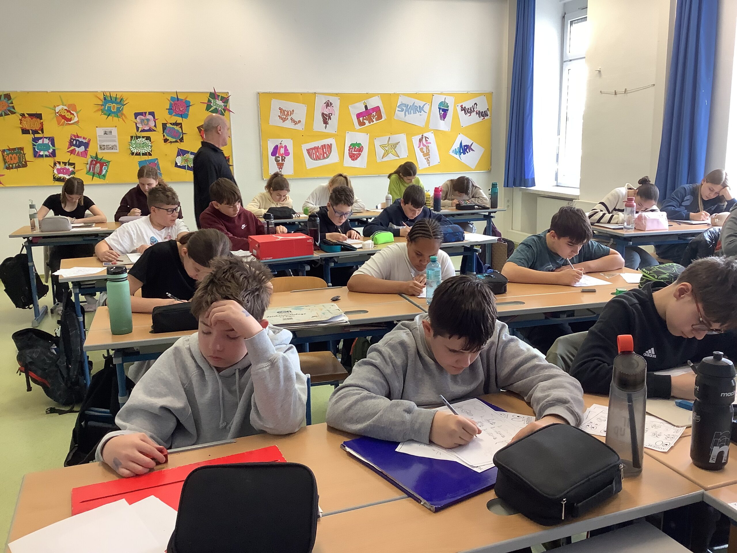 Der Karikaturist Rupert Hörbst arbeitete mit der Klasse im Zuge eines Workshops.